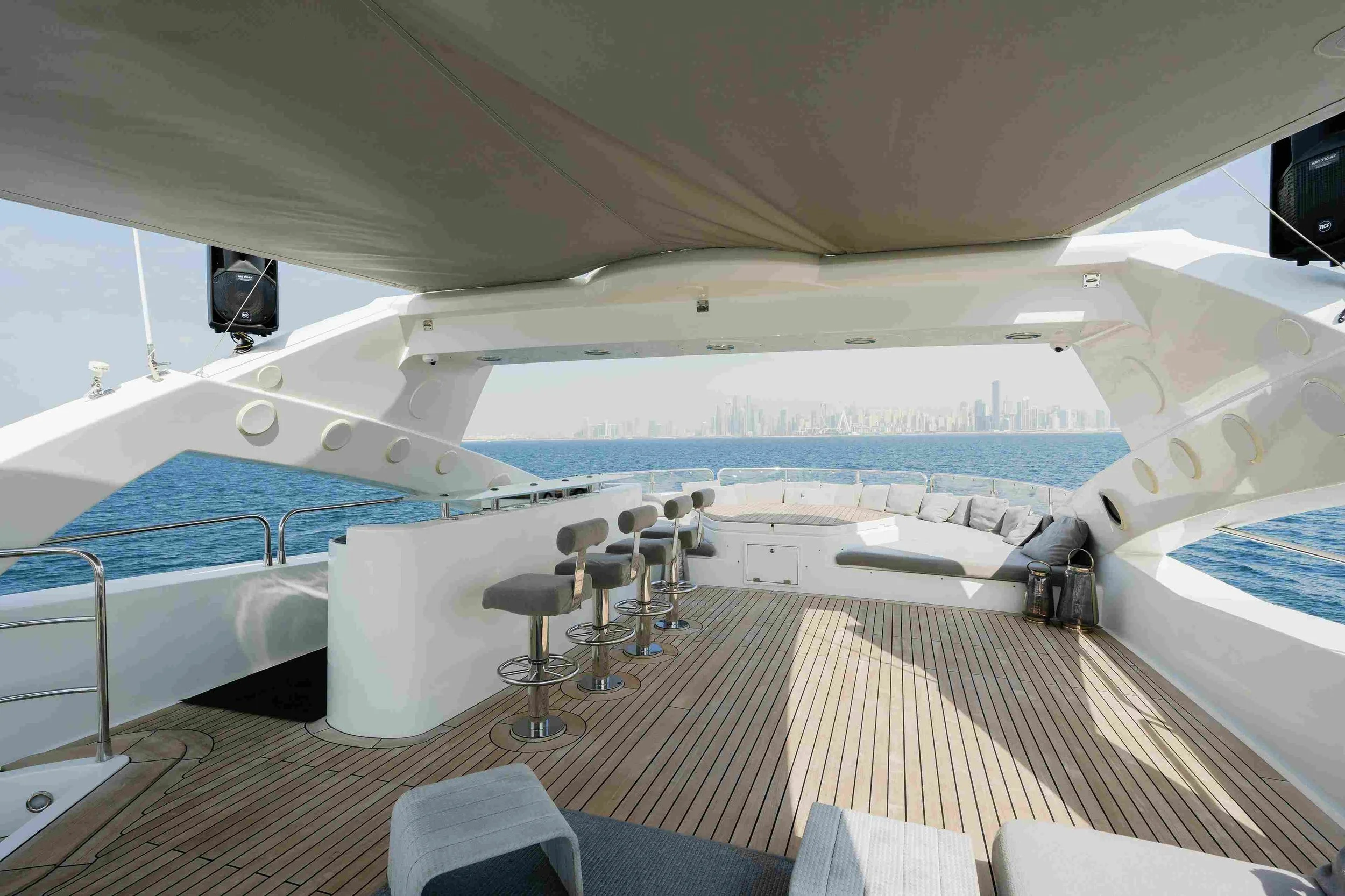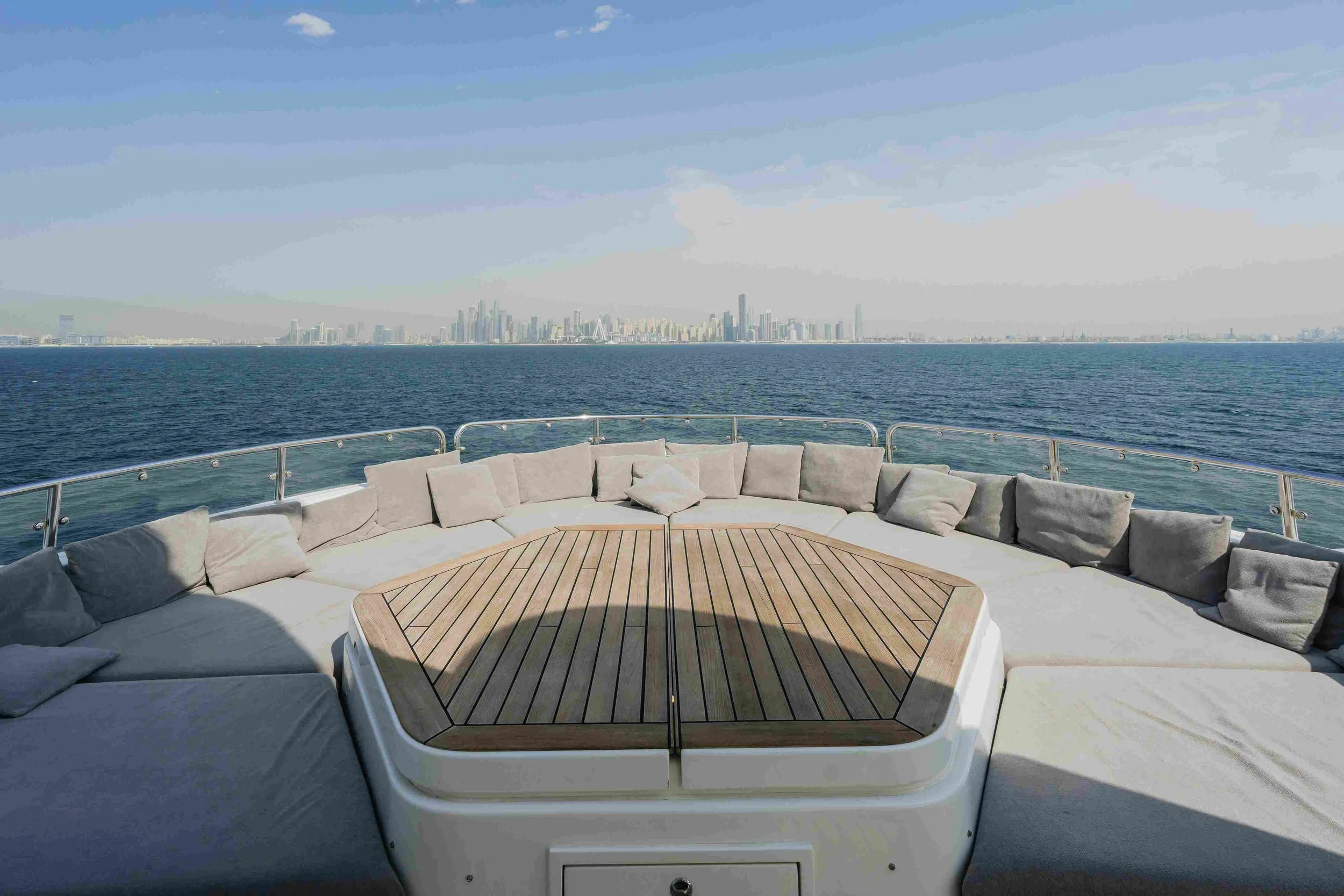 Charter the 131’ Sunseeker in Dubai and enjoy an exclusive experience at sea with space, comfort, and professional service.
