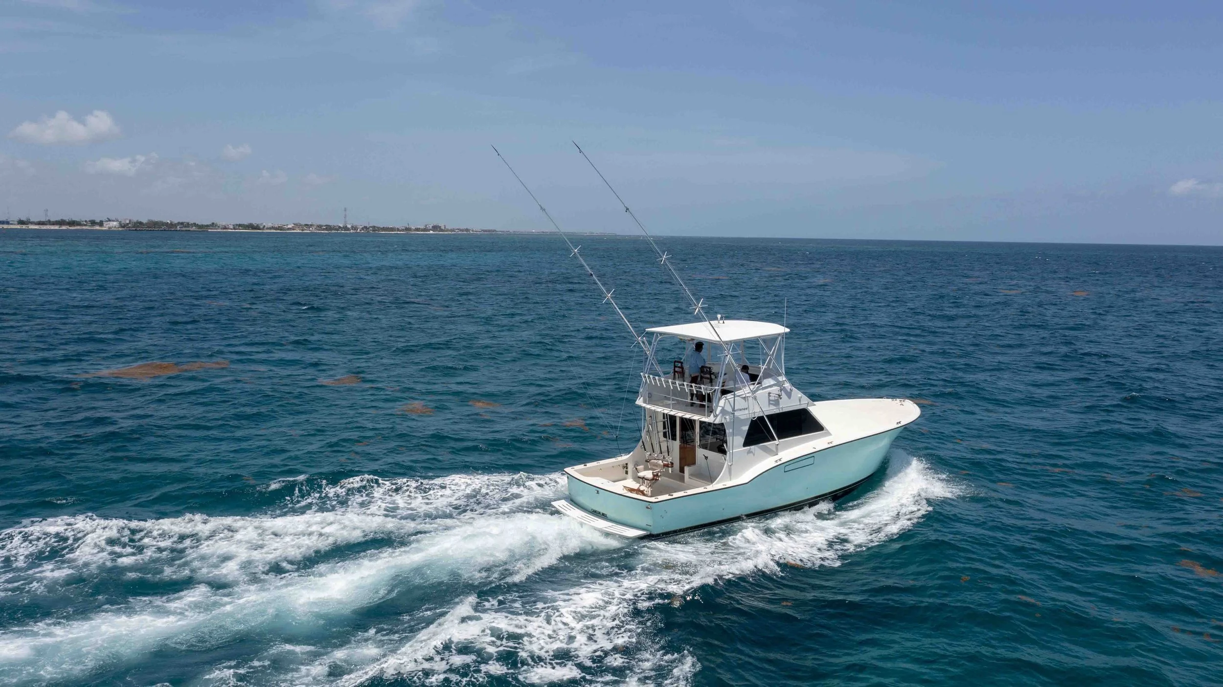 Greetings, fishing aficionados! We are excited to invite you to join us for an unparalleled day of fishing on the crystal-clear waters of Cancun, aboard our spacious and inviting 44’ Hatteras yacht. This yacht isn’t just a boat; it’s a promise of adventure, and the chance to create unforgettable stories of the one that didn’t get away.