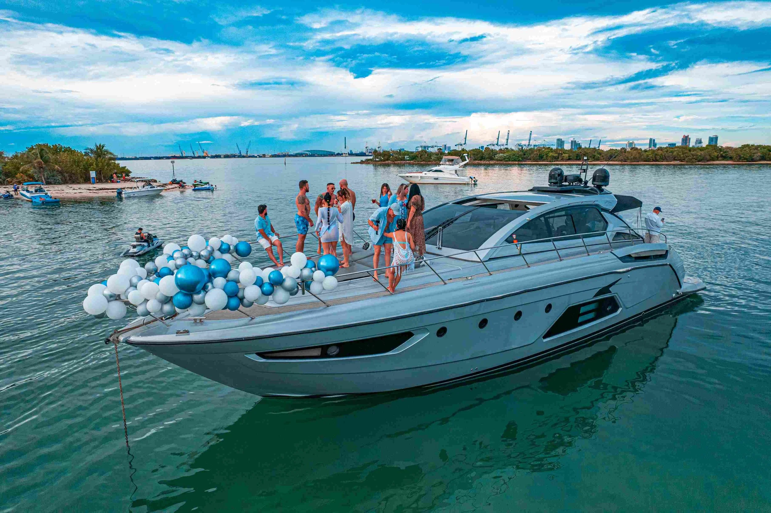 Our top destinations include Biscayne Bay, Port of Miami, Celebrity Residences, Miami Downtown (Skyline views), Fisher Island, Key Biscayne, Star Island, and Monument Island. At Monument Island, you can disembark and party with other yacht owners or your group. You can also swim or jet ski in the pristine waters.