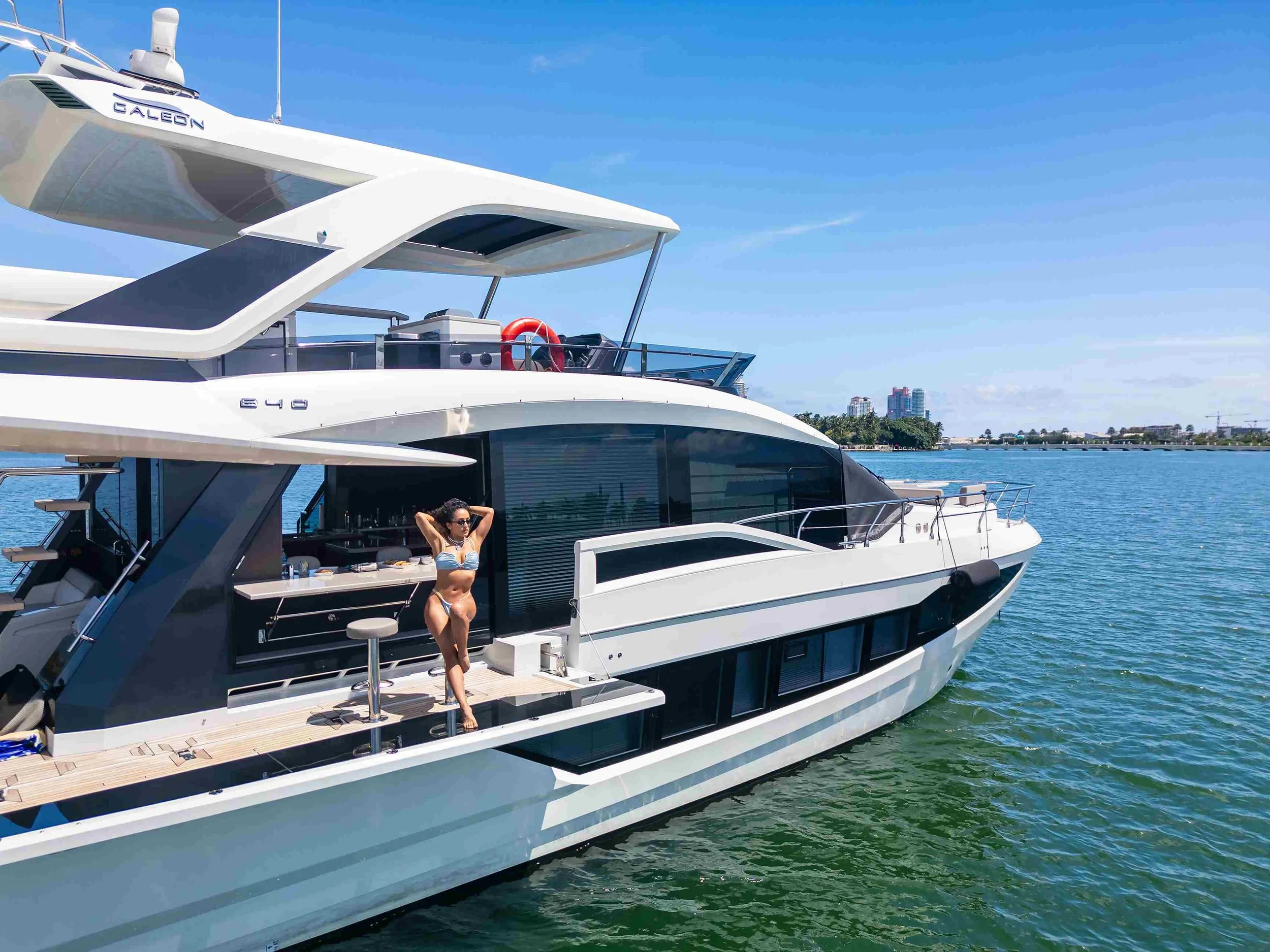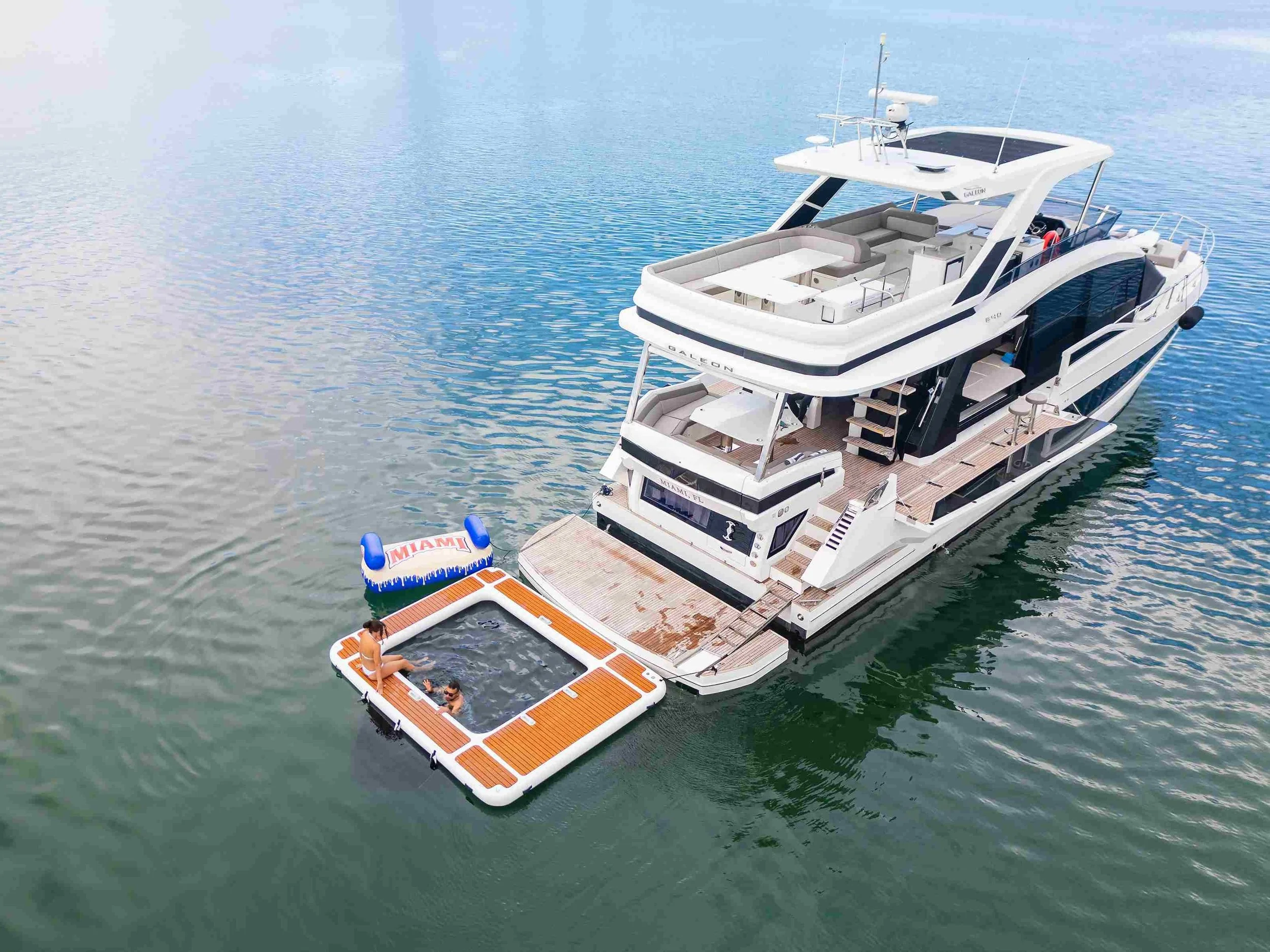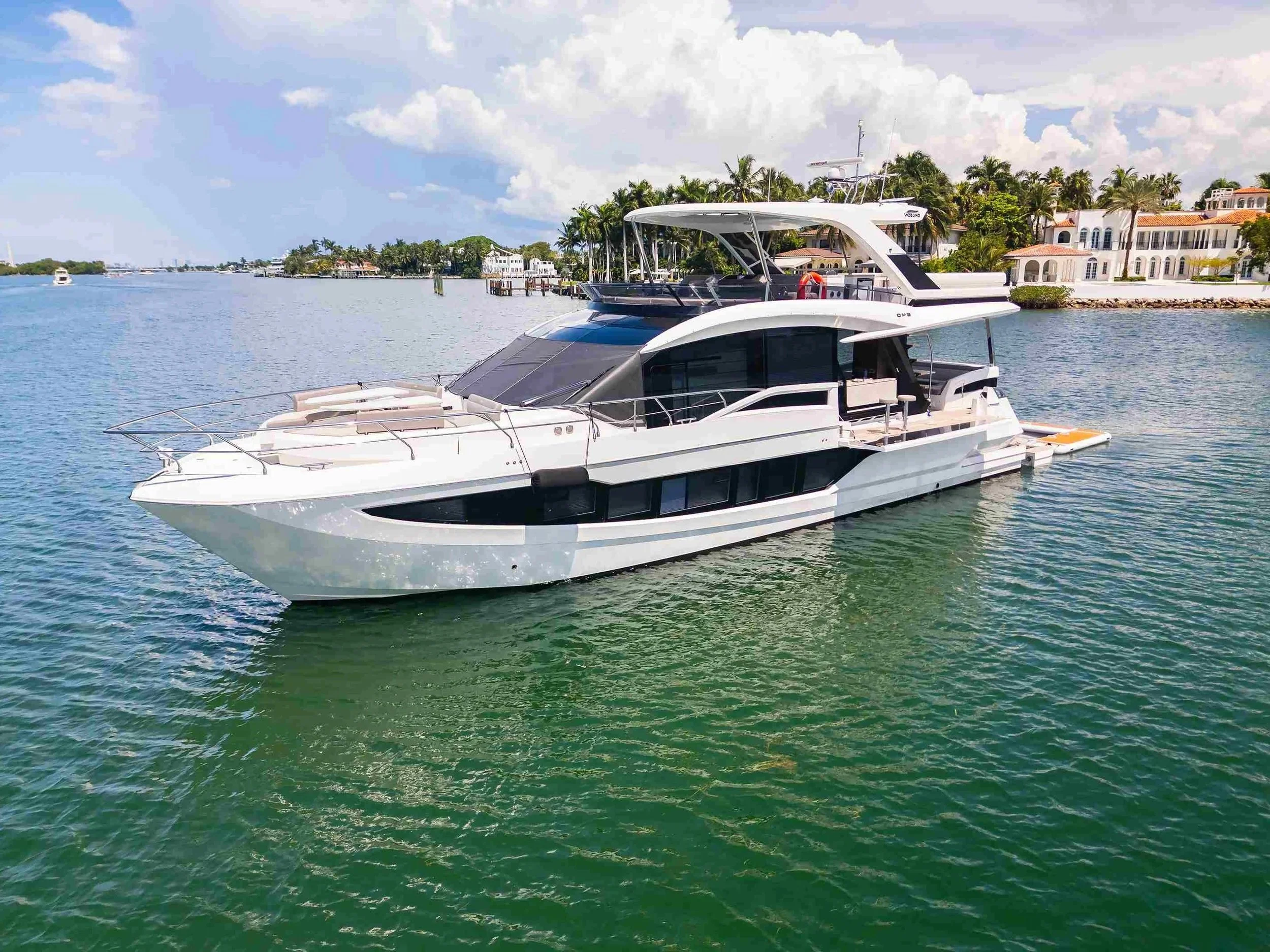 The 68’ Galeon is a modern and versatile luxury yacht available in Miami. It stands out for its innovative design, large windows, and a layout focused on delivering comfort across all areas. It features a spacious flybridge, a panoramic salon, and well-optimized exterior spaces that provide stable and efficient navigation.