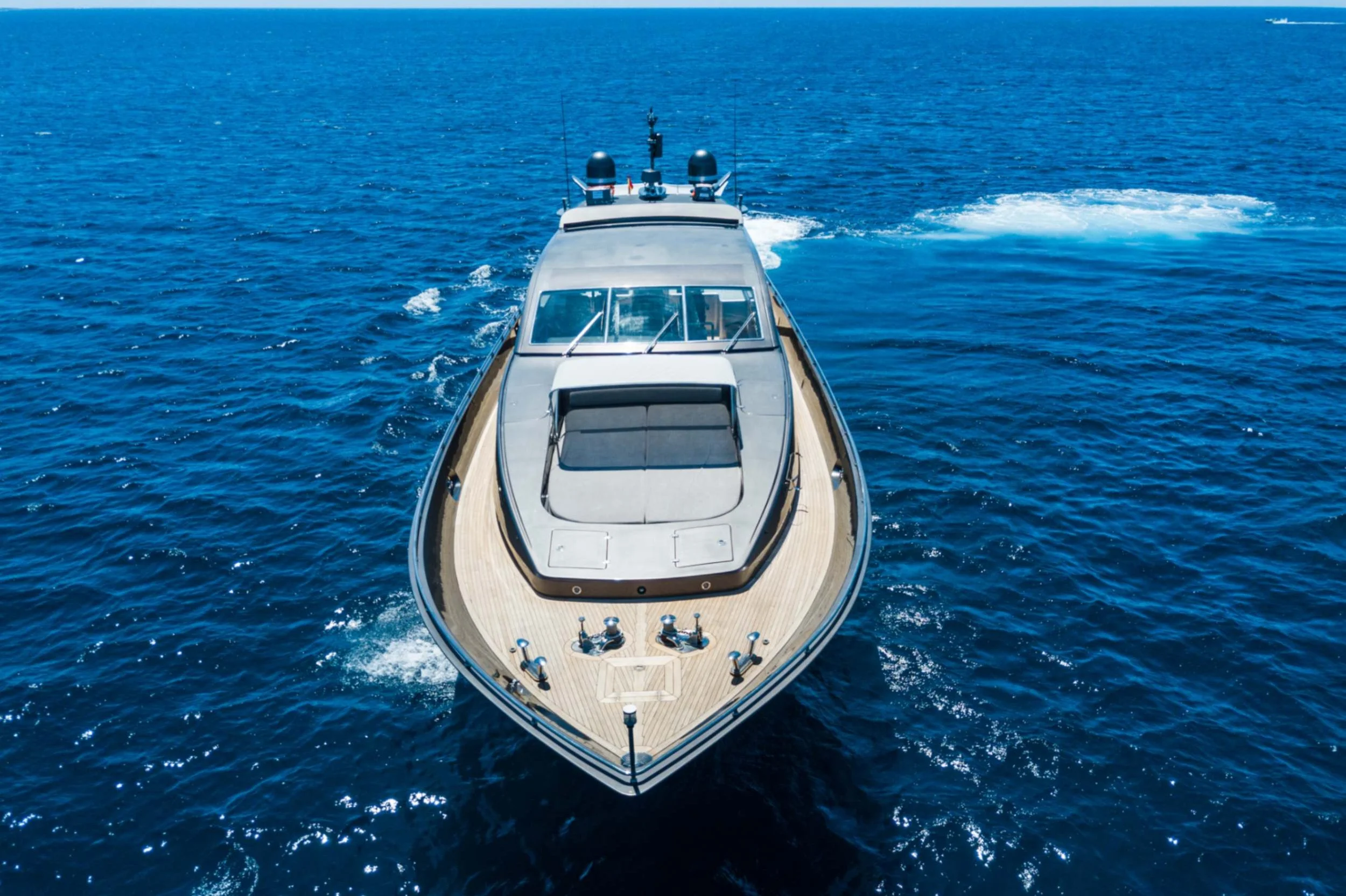 Our attentive crew has their private quarters, ensuring exceptional service and a seamless experience for you and your party. The yacht’s interior is a masterpiece of contemporary elegance, with each detail—from plush fabrics to sophisticated bathroom amenities—meticulously selected for your enjoyment. It includes four well-appointed bathrooms, enhancing privacy and convenience. Outside, the yacht offers expansive open areas perfect for relaxation, sunbathing, and socializing.