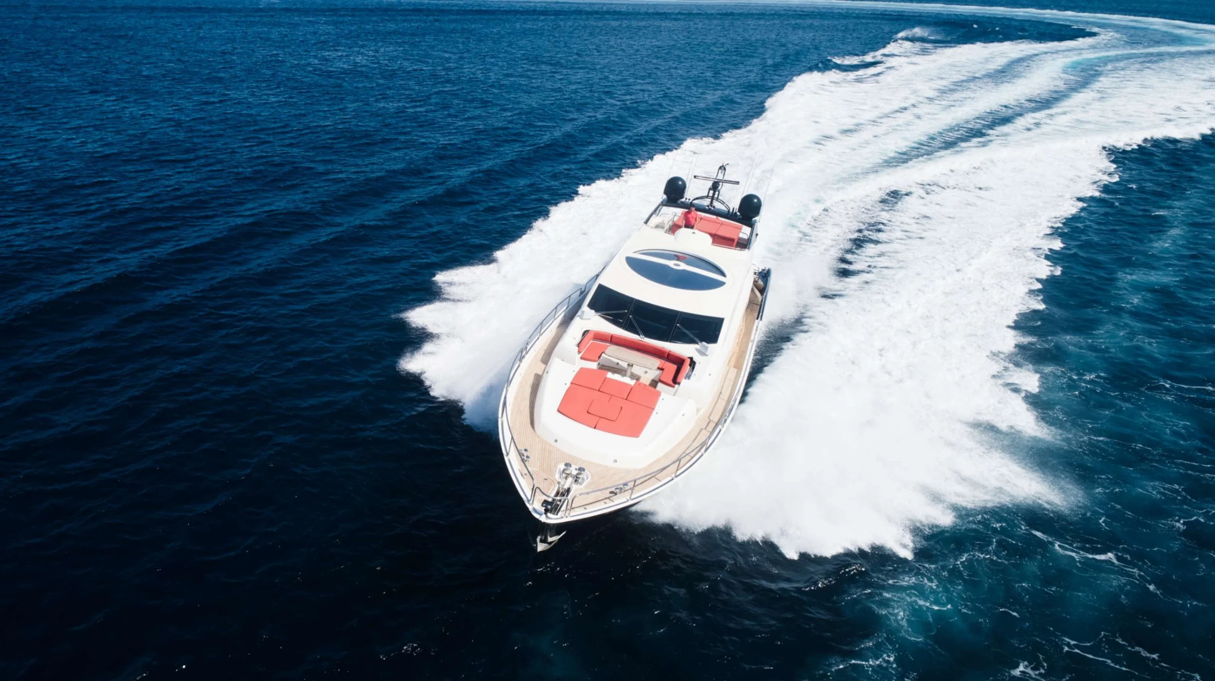 Embark on an unforgettable Mediterranean adventure aboard the 92′ Sunseeker UM7, renowned for its speed and agility. Cruising at 24 knots, this yacht ensures unlimited fun under the Ibiza sun. The open stern features a cozy lounge and an ideal outdoor dining space for enjoying fresh meals prepared in the fully equipped onboard kitchen.